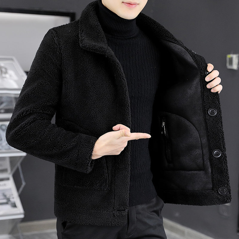 Stay warm and stylish with our REVERSIBLE FLEECE-LAMB'S WOOL JACKET. This jacket features a soft fleece on one side and cozy lamb's wool on the other, providing versatile comfort for any occasion. The reversible design allows for multiple looks, making it a practical and fashionable addition to your wardrobe.