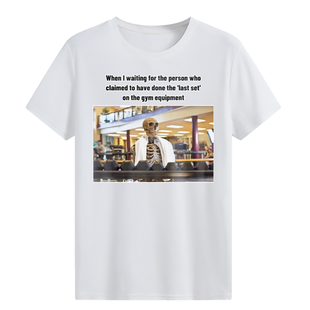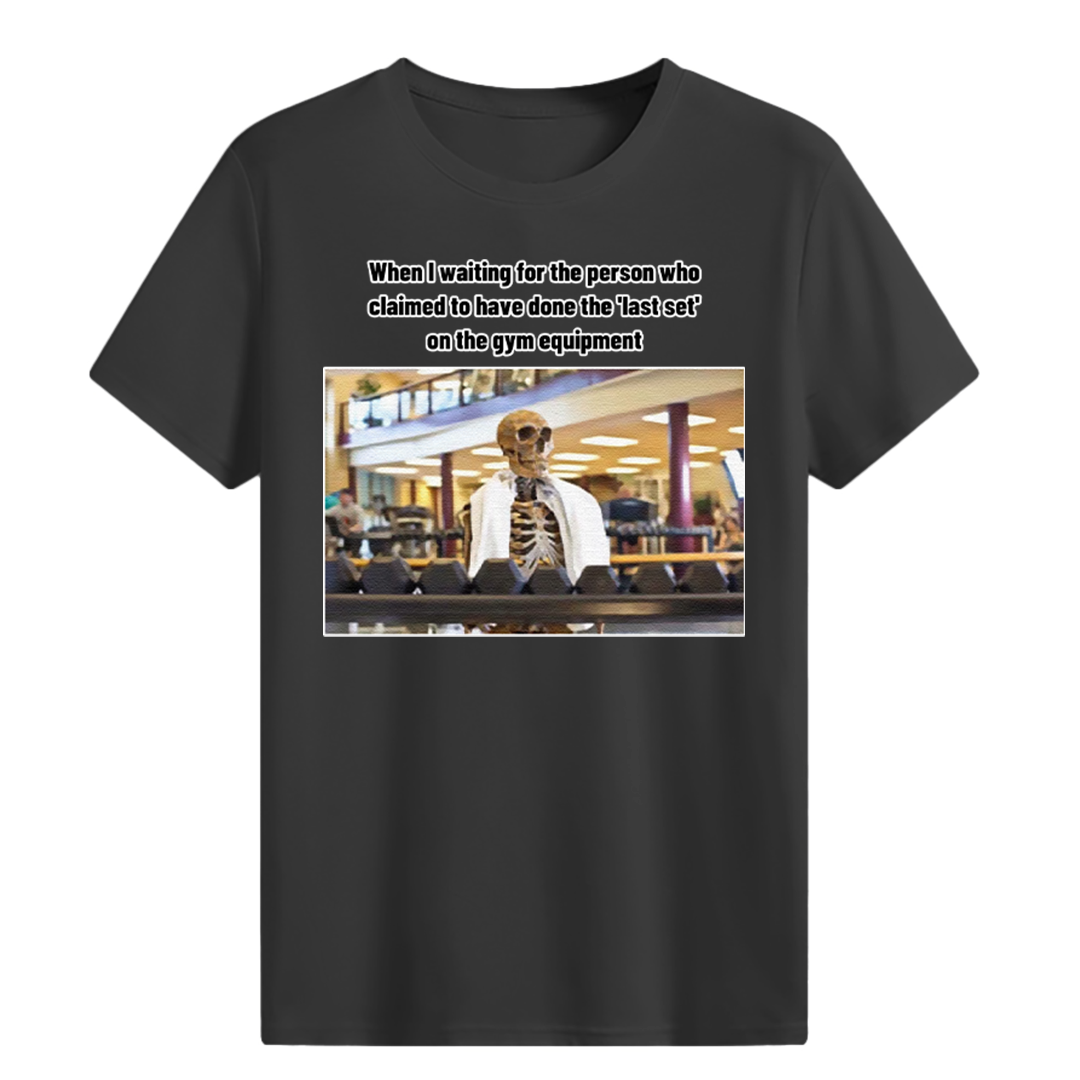 • When I waiting for the 'last set' gym equipment T-shirt