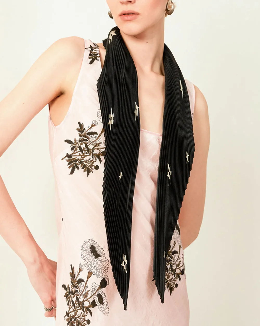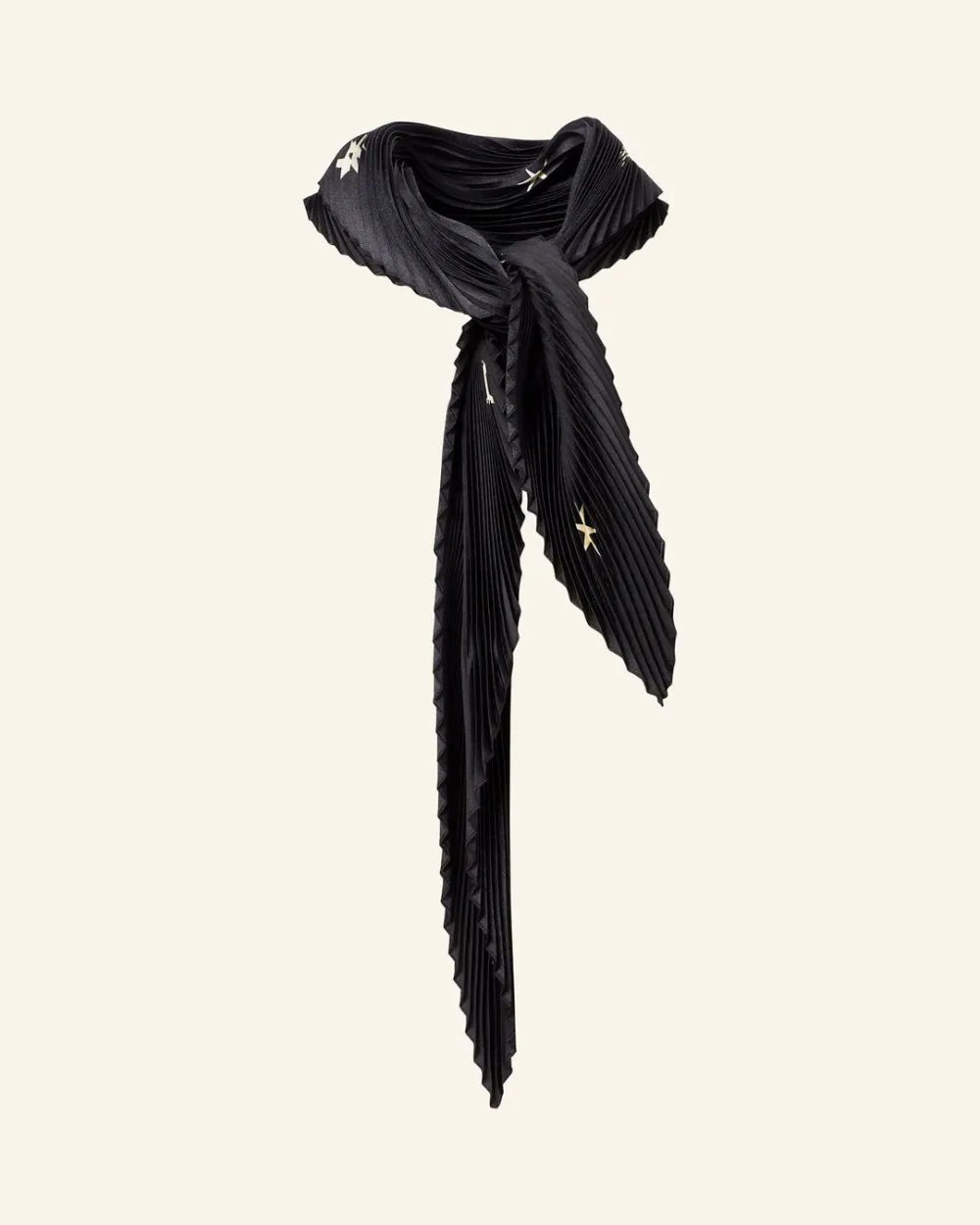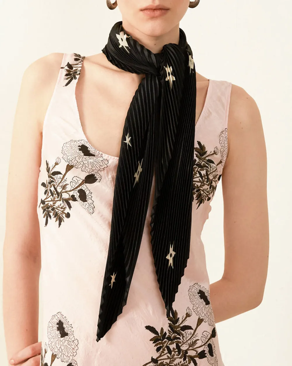 Rendered in plissé silk, our star-print scarf is made in France. Tied loosely, the micro-pleated skinny scarf is adds an extra bit of cool to any look.