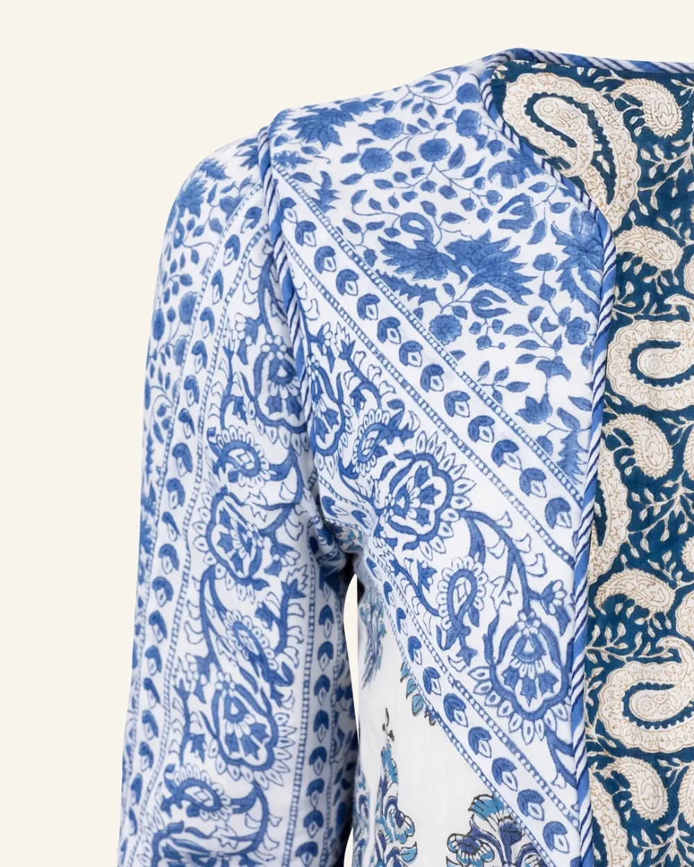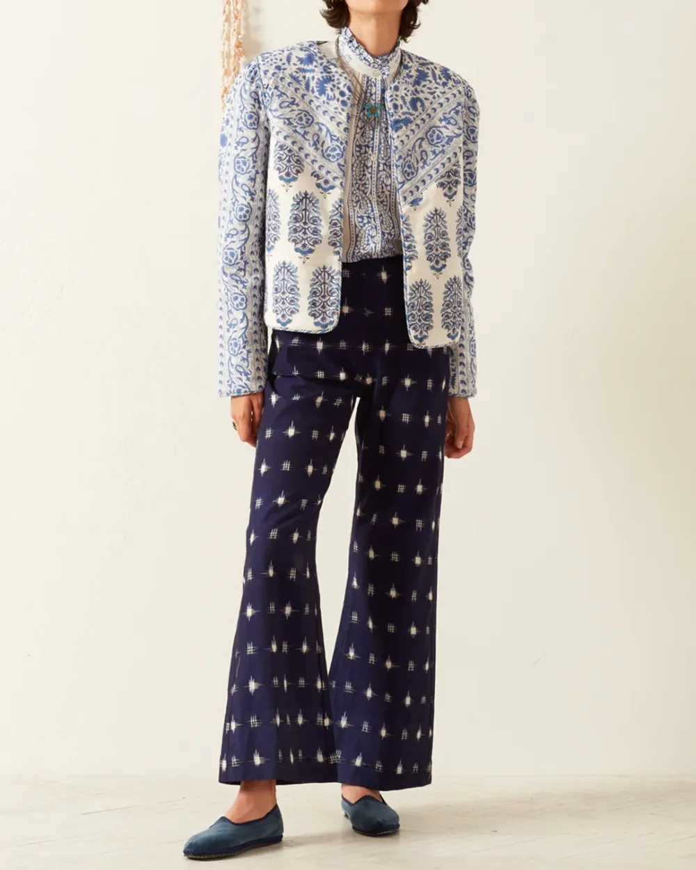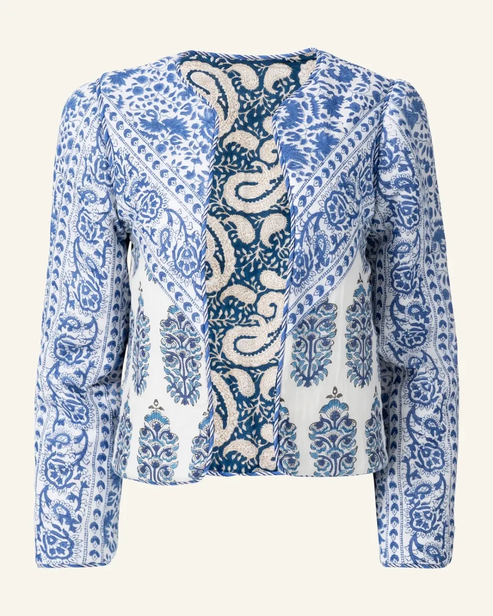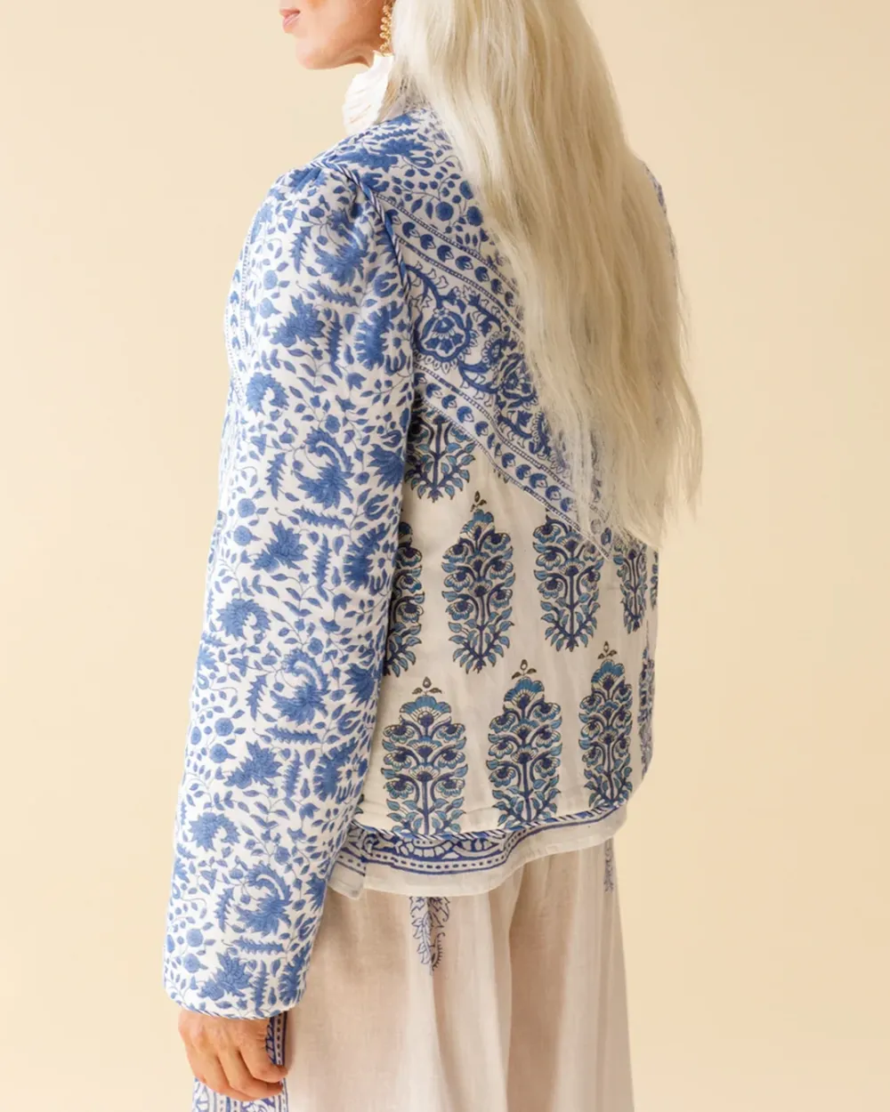 Inspired by blue-and-white porcelain, our block-printed cotton jacket is lightly-batted with an easy fit. Lined with paisley print cotton, the soft structure jacket features a contrasting yolk and border. Great for layering over a camisole or thin shirt.
